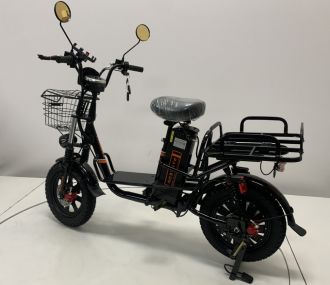 Металлическая корзина на руле и широкий задний багажник позволяют удобно перевозить различные грузы, включая сумки служб доставки, ящики и личные вещи.